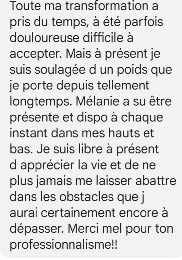 En investissant en moi avec plusieurs coachs, puis en ayant suivi des formations, j'ai pu mettre les choses à plat, m'en libérer, devenir celle que je voulais être et vivre la vie que je rêvais d'avoir !