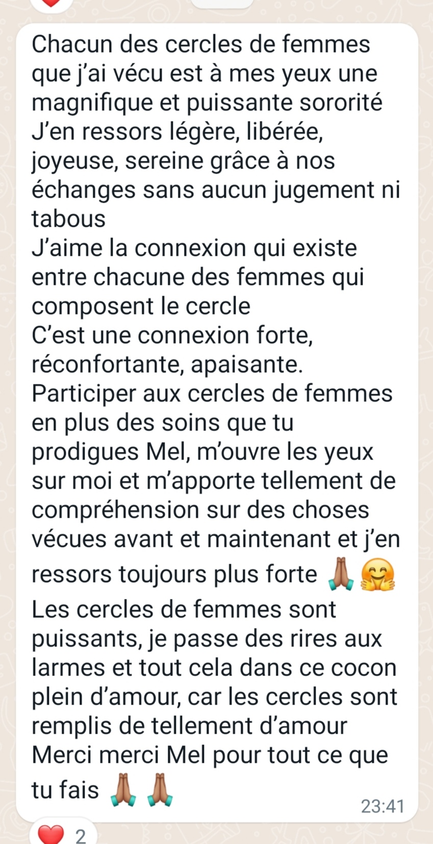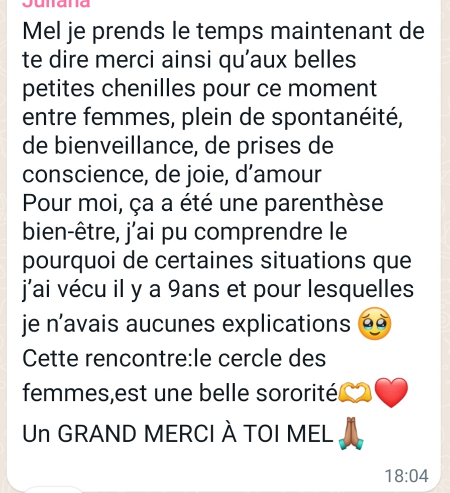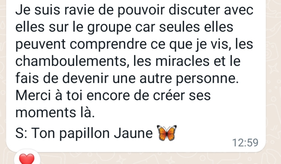 🌺 Un groupe privé WhatsApp pouréchanger et se soutenir avec les femmes incroyables qui chemineront à tes côtés.